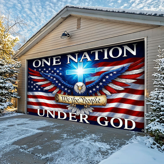 Lorva Patriotic Garage Door Banner Decoration In God We Stand
