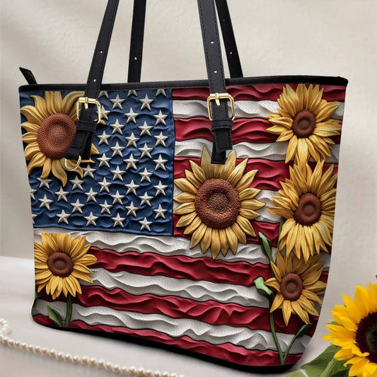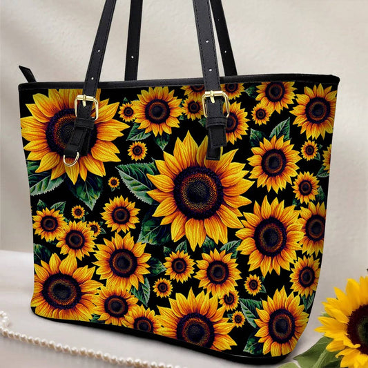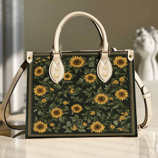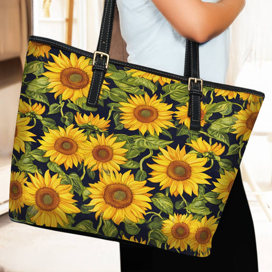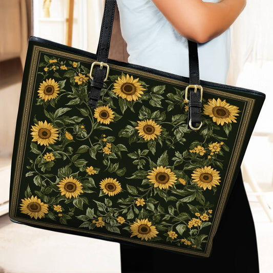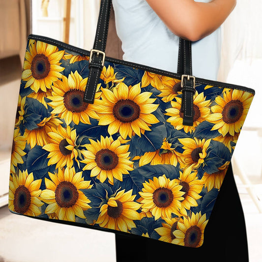 Lorva Leather Tote Bag Classical Sunflowers